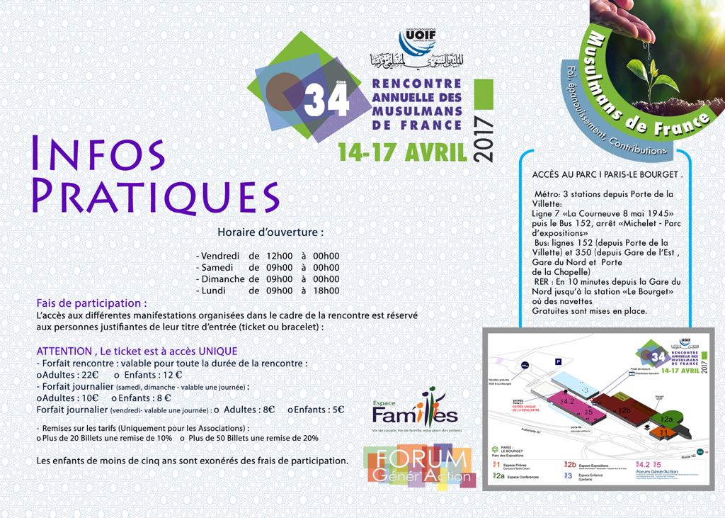 Tous à vos agendas, la Rencontre se déroulera du 14 au 17 avril 2017 au parc d’exposition Paris-Le Bourget. Venez rejoindre cette aventure humaine qui, par la Miséricorde d’Allah, fêtera son 34ème anniversaire.