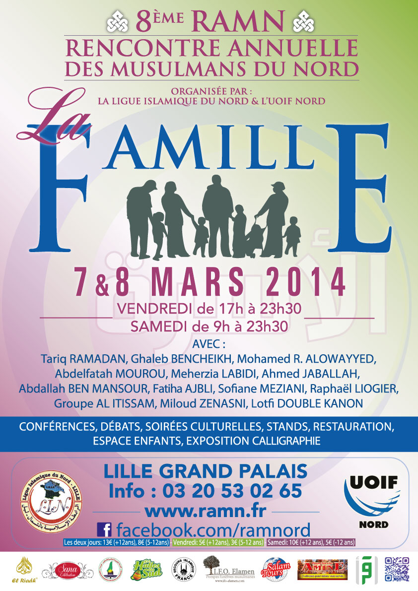 La Ligue Islamique du Nord vous invite à la huitième édition de la Rencontre Annuelle des Musulmans du Nord qui se déroulera le vendredi 7 mars à partir de 17 heures et le samedi 8 mars 2014 dès 9 heures à Lille Grand Palais.