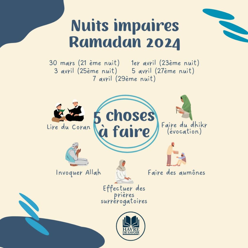 « Cherchez la nuit du destin dans les nuits impaires des dix derniers jours de Ramadan ».