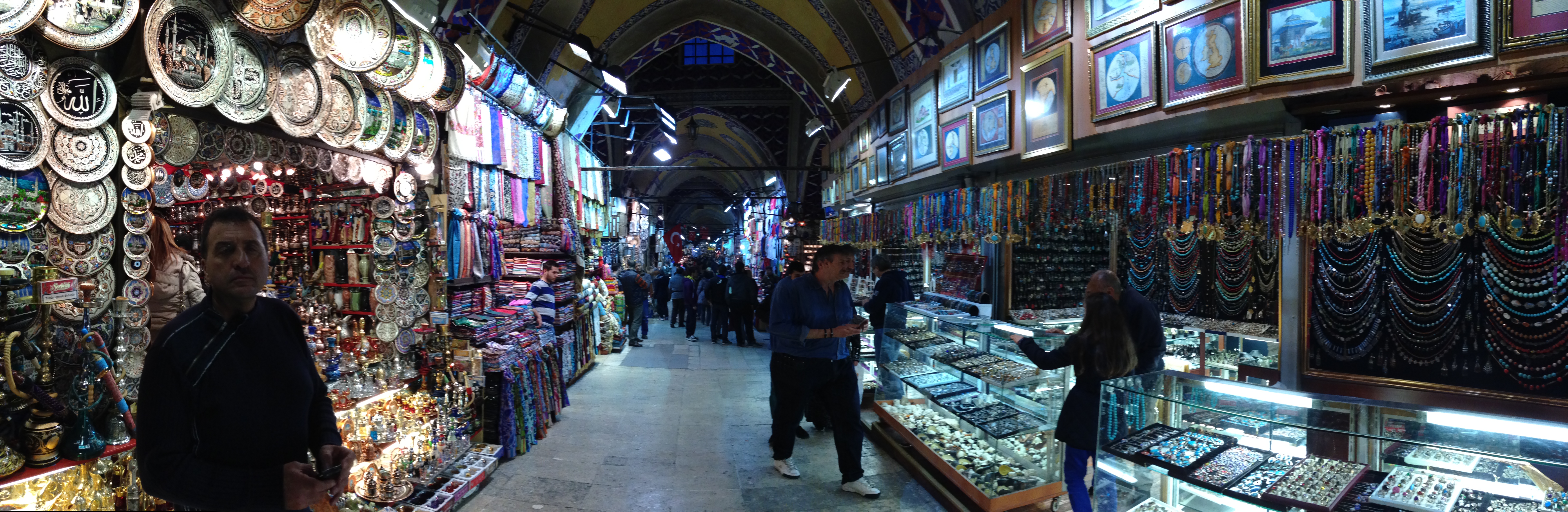 Après cette visite culturelle haletante qui nous a littéralement transportés, on ne peut passer dans la ville sans se promener dans le Grand Bazar. Le Grand Bazar, c’est un enchevêtrement de ruelles couvertes dans lesquelles abondent les babioles en tous genres dans une formidable explosion de couleurs et de vie : tapis bon marché, bijoux d’argent, loukoums savoureux, mille et une épices, tee-shirts à l’effigie du pays, narguilés colorés, antiquités estimées, cuirs et peaux à gogo…. une véritable caverne d’Ali Baba qui a fait le malheur de notre porte-monnaie ! Ici, tout se marchande alors certains ont déployé leurs plus fins talents de négociateurs et ont saisi l’occasion de faire des affaires. 2000 boutiques réparties par type d’activités sont là rien que pour ça vous imaginez
