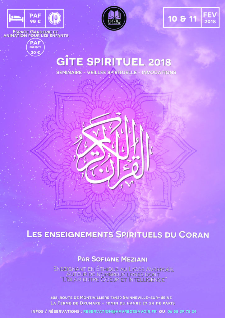 Havre De Savoir a le plaisir de vous présenter le prochain gîte spirituel: « Les enseignements spirituels du Coran » par Sofiane Meziani.