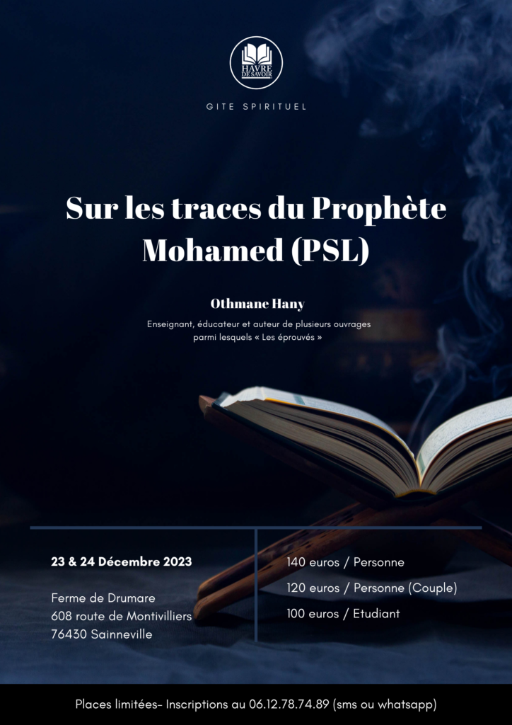Nous sommes ravis de vous convier à notre gîte spirituel sur le thème : « Sur les traces du Prophète Mohamed (PSL) ».