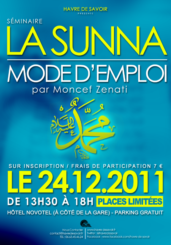 Share Share on Facebook Share on Twitter Pinterest Email [si-contact-form form=’2′] moncef zenatisunna Related Posts Retour sur la cérémonie de pose de la première pierre – Mosquée Maryam 15 septembre 2025 Communiqué – Olivier de la Paix 9 septembre 2025 Communiqué – Pose de la première pierre de la Mosquée Maryam 9 septembre 2025 4 Comments safaa 14 ans ago Reply dans qu’elle pays/ville Havre De Savoir Post Author 14 ans ago Reply Salam ‘Alaykum, Le séminaire aura lieu en France plus précisément dans la ville du Havre (76600). brolydiana 14 ans ago Reply salam alaikoum dans qu’elle ville a lieu ce séminaire? Havre De Savoir Post Author 14 ans ago Reply Salam ‘alaykum Dans la ville du Havre (76600) Write A Comment Cancel Reply Enregistrer mon nom, mon e-mail et mon site dans le navigateur pour mon prochain commentaire. Δ Ce site utilise Akismet pour réduire les indésirables. En savoir plus sur la façon dont les données de vos commentaires sont traitées.