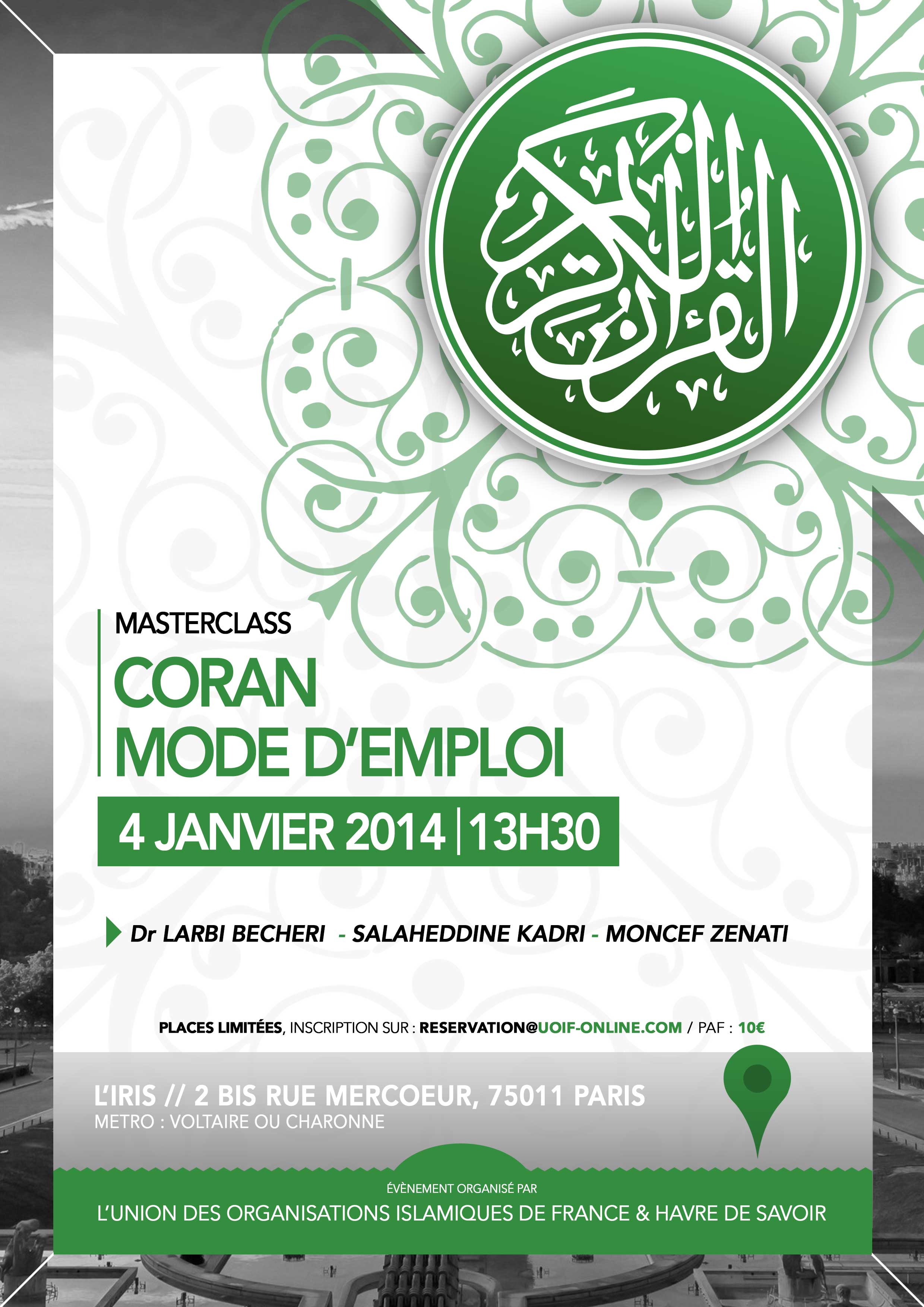 Le 4 janvier 2014, Havre De Savoir et l’Union des Organisations Islamiques de France organisent un Masterclass avec pour thème : Coran, mode d’emploi.