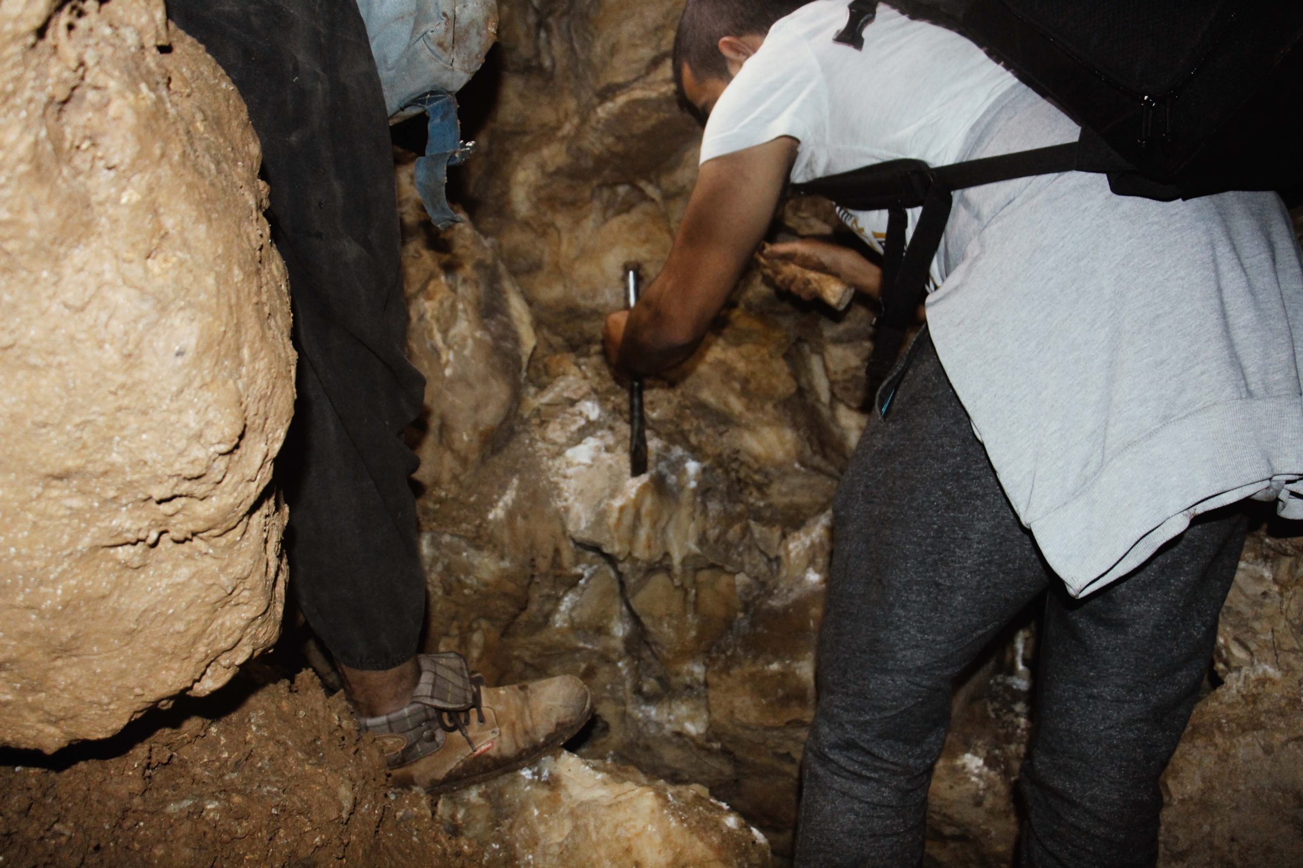 Équipés de marteaux et de piques et accompagnés d’un chien de quartier, nous partîmes avec Thomas, qui assura spontanément notre sécurité tout le long de notre parcours, à la découverte de ces grottes mystérieuses.