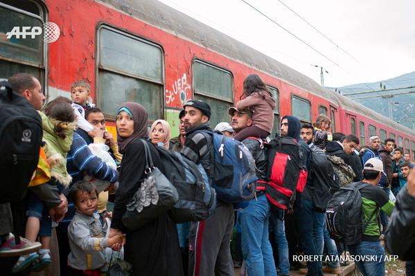 La photo originale vient en fait de l’AFP… et date du 18 juin, comme l’a repéré un journaliste de l’agence. Il s’agit bien de migrants, qui se trouvent en Macédoine mais à aucun moment, ils ne prennent un train pour la France et encore moins pour Béziers.