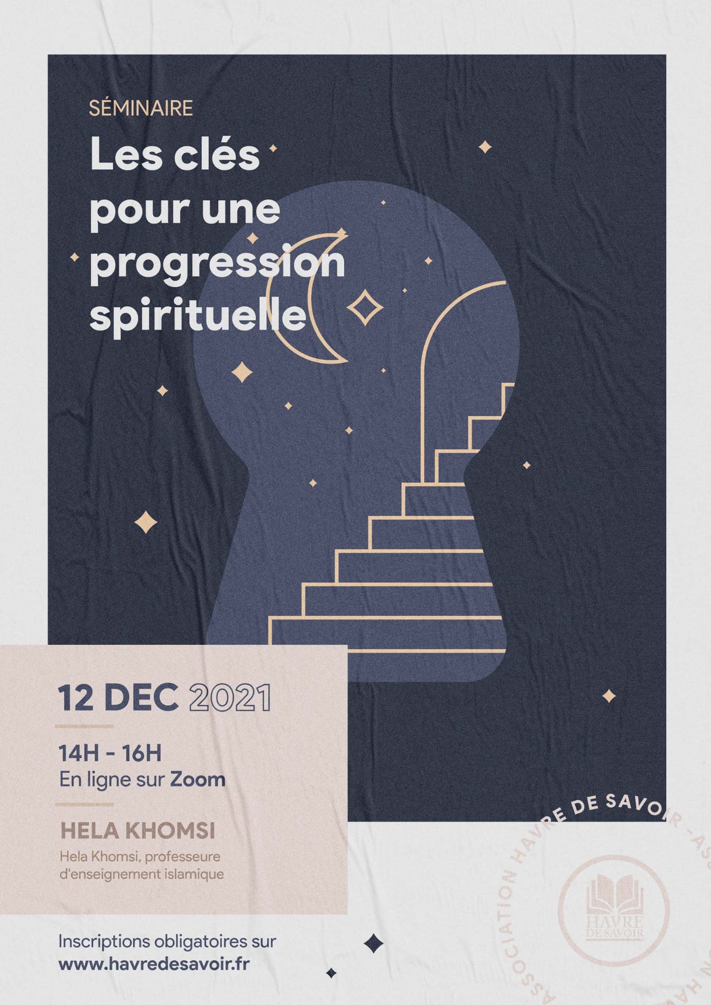 Pour nous accompagner dans cette quête de progression et d’amélioration spirituelle, nous vous proposons un séminaire où nous aurons l’honneur d’avoir les précieux conseils de Hela KHOMSI (professeur d’enseignement islamique).