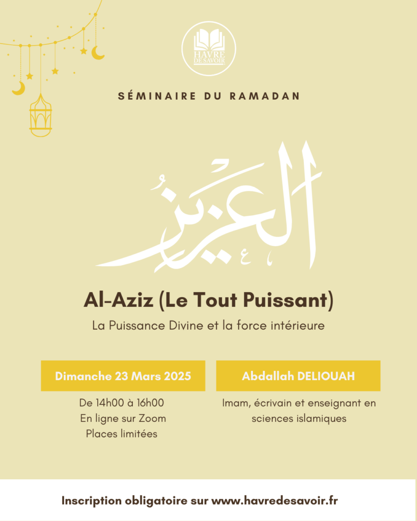 Rendez-vous avec Abdallah Deliouah, dimanche 23 Mars 2025 de 14h00 à 16h00 sur Zoom pour comprendre la beauté cet attribut Divin.