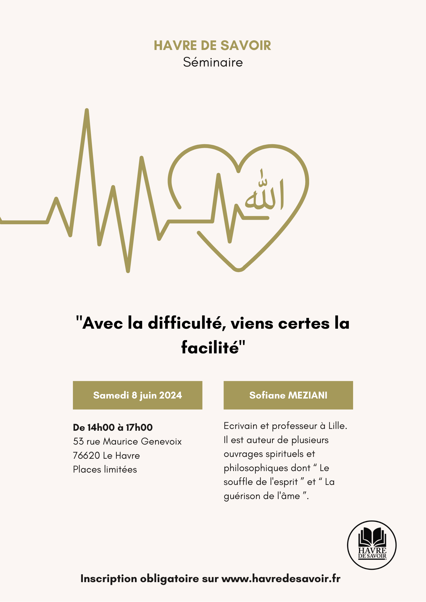 Nous aborderons toutes ces questions en profondeur lors de ce séminaire avec Sofiane Meziani ce samedi 8 Juin 2024, de 14h00 à 17h00, au 53 rue Maurice Genevoix, 76620 Le Havre.