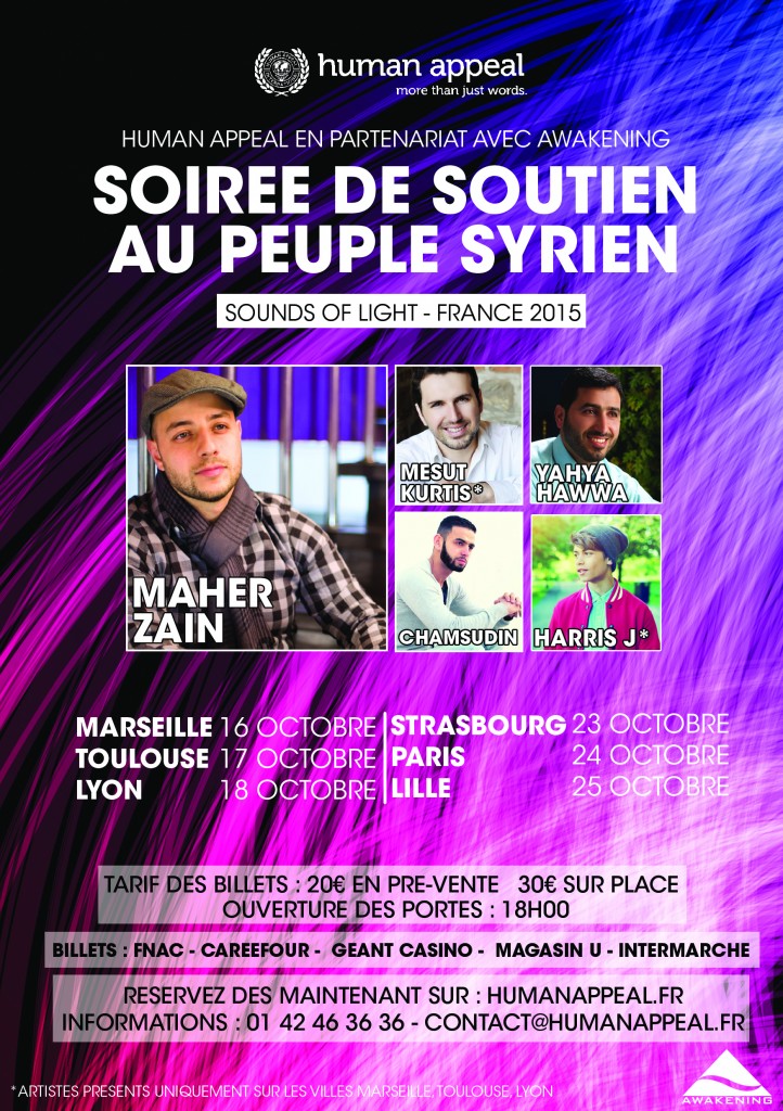 L’association humanitaire Human Appeal organise une tournée dans toute la France intitulée « Sound of Light » afin de lever des fonds pour les populations syriennes.