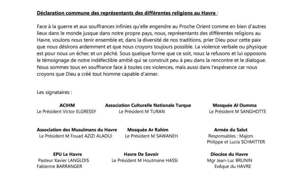Continuons à bâtir sur cette fondation de respect et de compréhension mutuelle, afin que Le Havre demeure toujours un symbole d’espoir et de coexistence pacifique.